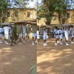 Soldiers make uncooperative corpers to march around with mattresses on their heads in front of their colleagues for dodging morning parade at NYSC camp.