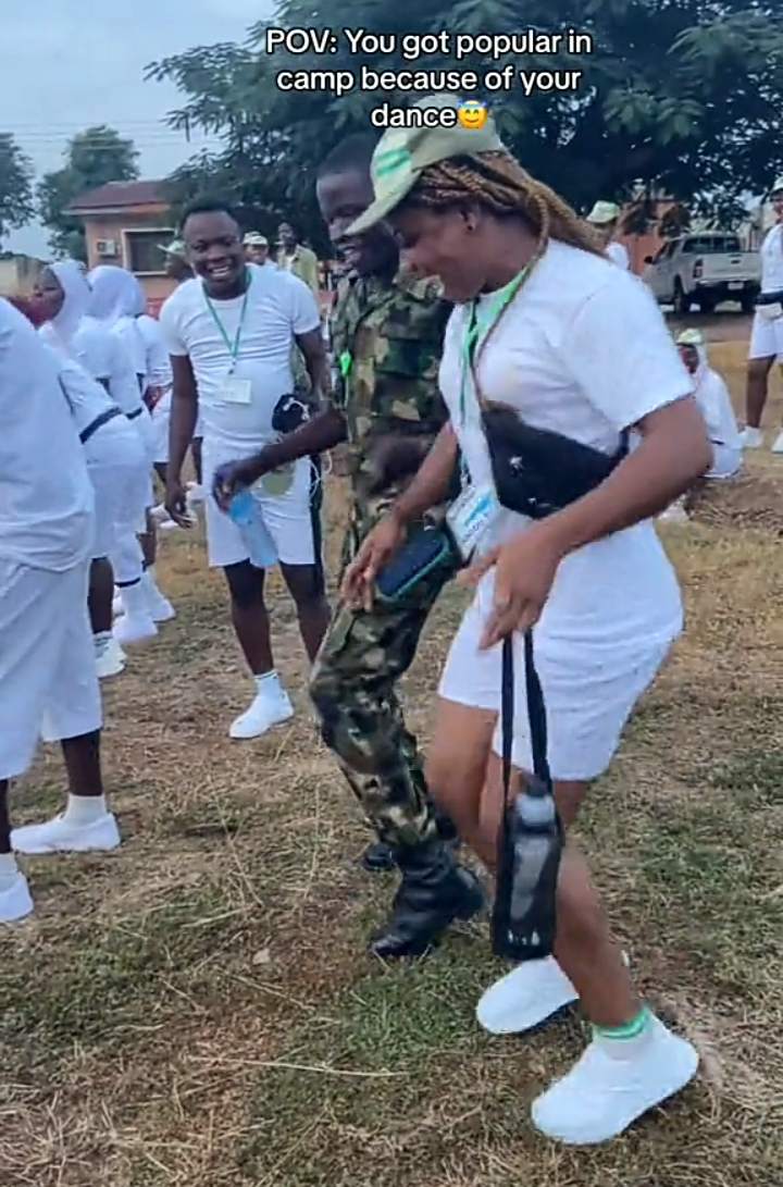Corper takes the spotlight at NYSC camp as she and soldier show off impressive dance moves the orientation camp.